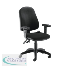 First Calypso Operator Chair with Lumbar Pump with Adjustable Arms 640x640x990-1160mm Black KF822912. Ergonomic chair Adjustable Arms. Inflatable lumbar pump. PCB mechanism provides support whichever way the user moves. Curved foam back. Non-returnable.