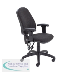 First High Back Posture Chair with Adjustable Arms 640x640x990-1160mm Charcoal KF839326. Lumbar pump as standard. Tested to BS7176 medium hazard. with Adjustable Arms. Seat Dimensions (WxD): 470x450mm. Back Dimensions (WxH): 450x500mm. Non-returnable.