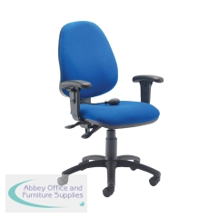 First High Back Posture Chair with Adjustable Arms 640x640x990-1160mm Blue KF839325. Lumbar pump as standard. with Adjustable Arms. Seat Dimensions: 470x450mm. Back Dimensions (WxD): 450x500mm. Seat Height: 460-590mm. Colour: Blue. Non-returnable.
