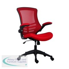 Jemini Jaya Operator Chair 680x670x970-1070mm Red KF70064. Folding arms with a padded arm pads, colour-matched to the back and seat. Featuring a lock-tilt mechanism with torsion control. Suitable for up to 8 hrs usage.