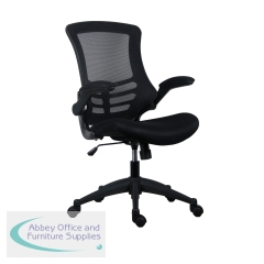 Jemini Jaya Operator Chair 680x670x970-1070mm Black KF70066. Folding arms with a padded arm pads, colour-matched to the back and seat. Featuring a lock-tilt mechanism with torsion control. Suitable for up to 8 hrs usage.