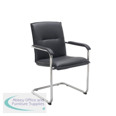 First Stratus Tuscany Visitor Chair Leather Look KF90272. Recommended usage time 8 hours. Leather Look arm pads. Chrome cantilever frame. Colour: Black. Seat dimensions: W450 x D430mm. Back dimensions: W450 x H430mm. Seat height: 470mm. Non-returnable.