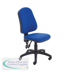 First High Back Operator Chair 640x640x985-1175mm Blue KF98506. Back height and angle is adjustable and can be fixed or free floating. Seat height adjustable between 460 - 590mm. Seat dimensions: W470xD450mm. Non-returnable.