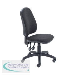 First High Back Operator Chair 640x640x985-1175mm Charcoal KF98507. Back height and angle is adjustable and can be fixed or free floating. Seat height adjustable between 460 - 590mm. Seat dimensions: W470xD450mm. Non-returnable.