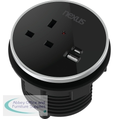 Nexus In Desk Power Module Black KF882377. Provides convenient access to electrical outlets and USB charging ports. Promotes productivity and connectivity. Easily accessible power sources. Dimensions (WxDxH): 95x95x50mm. Colour: Black.