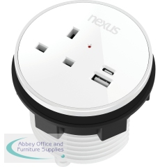 Nexus On Desk Power Module White KF882375. Provides convenient access to electrical outlets and USB charging ports. Promotes productivity and connectivity. Easily accessible power sources. Dimensions (WxDxH): 107x70x50mm. Colour: White.