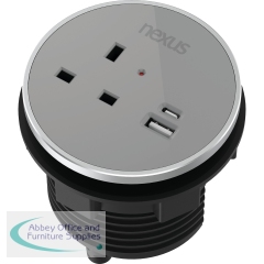 Nexus In Desk Power Module Grey KF882379. Provides convenient access to electrical outlets and USB charging ports. Promotes productivity and connectivity. Easily accessible power sources. Dimensions (WxDxH): 95x95x50mm. Colour: Grey.