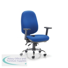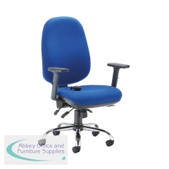 First Arista Aire High Back Ergonomic Operator Chair 675x580x1035-1230mm Blue KF80327. Adjustable arms. 3-lever asynchro with torsion mechanism. Ratchet back. Lumbar pump. Seat slide adjustment: 50mm. Ratchet back height adjustment: 80mm.