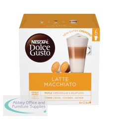 Nescafe Dolce Gusto Latte Macchiato Coffee Capsules (Pack of 48) 112416323. Spectacular and voluptuous. A blend of hot milk, smooth coffee and voluptuous froth. Produces 24 drinks. Supplied in 3 Boxes containing 16 capsules in each.