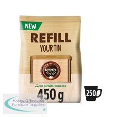 Nescafe Gold Blend 450g Refill Pouch 12578619. Quality coffee blend ideal for sharing with customers/colleagues. Ground 10 times finer to unlock the taste and rich aroma. Made from mountain-grown Arabica beans. Smooth, well-rounded flavour.