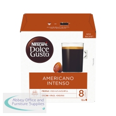 Nescafe Dolce Gusto Americano Intenso Coffee 132.8g (Pack of 48) 12528702. Americano Intenso coffee is powerful and full bodied. Each capsule contains enough coffee for one serving. Use with Dolce Gusto coffee machines. Pack of 48 (3 boxes x 16 capsules )
