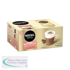 Nescafe Gold Cappuccino Unsweetened Instant Coffee Sachets (Pack of 50) 12405012. Just add hot water. High quality roasted coffee. With whitener for a smooth and velvety drink. Each sachet contains 14.2g. No hydrogenated oil/ artificial colours.