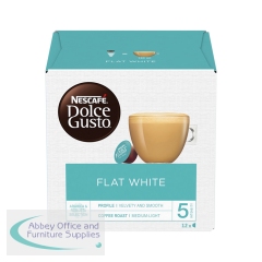 Nescafe Dolce Gusto Flat White Coffee 140.4g (Pack of 36) 12552348. Flat white velvety and smooth coffee. Each capsule contains enough coffee for one serving. For use with Dolce Gusto coffee machines. Pack of 36 (3 boxes x 12 capsules)
