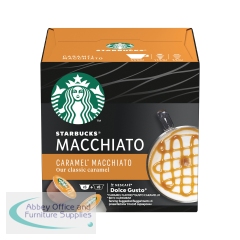 Nescafe Dolce Gusto Starbucks Caramel Macchiato Coffee Podss (Pack of 36) 12397694. Classic caramel. Rich espresso with vanilla flavoured syrup and a hint of caramel sauce. Pack of 36 x 3 boxes containing 12 pods in each. Each pack makes 18 drinks.