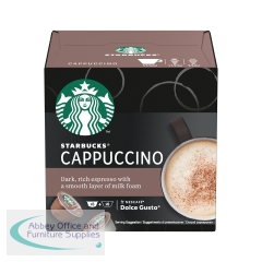 Nescafe Dolce Gusto Starbucks Cappuccino Coffee Pods (Pack of 36) 12397695. Indulgent and deliciously familiar. Dark rich espresso with a smooth layer of milk foam. Pack of 36 capsules in 3 boxes containing 12 pods in each. Makes 18 drinks.