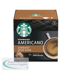 Nescafe Dolce Gusto Starbucks House Blend Americano Medium Roast Coffee Pods (Pack of 36) 12397697. Medium roast. Rich espresso with toffee notes. Pack of 36 capsules supplied in 3 boxes containing 12 capsules in each. Makes 36 drinks.