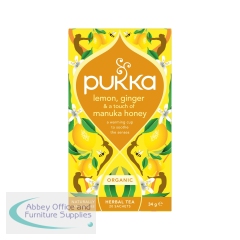 Pukka Three Ginger Tea Bags Organic (Pack of 20) 05065000523428. Feel comfortable and revitalised after meals. Contains: Ginger root, galangal root, Liquorice root and turmeric root. Fully recyclable and compostable. Caffeine free. Organic. Pack of 20.