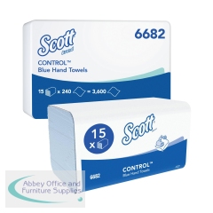 Scott Control Interfold V Fold Paper Hand Towels 1 Ply 240 Sheets Blue (Pack of 15) 6682. Disposable paper towels are ideal for drying hands. The interfolded design helps prevent towels from ripping when pulled and ensures only one is dispensed each time.