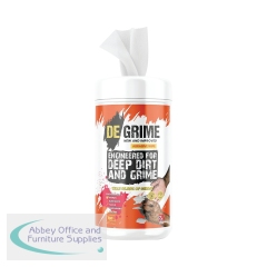 Medisanitize De Grime Abrasive Deep Dirt and Grime 100 Wipes (Pack of 400) DGBU100PG. Cleaning wipes for degreasing hands, surfaces and machinery. Contain a disinfectant solution containing a blend of high-grade biocides. Single use. 100 wipes per tub.