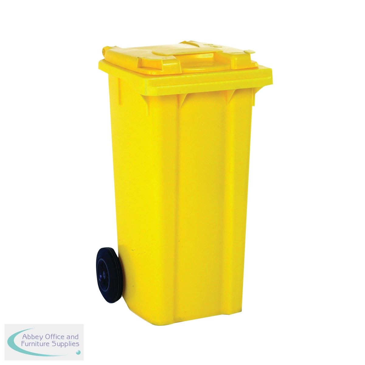 This tough and durable refuse container is made from UV stabilised polyethylene, which is weather-resistant and designed for long life. The lid and high quality plastic construction help keep odour contained and the 2 wheels provide easy manoeuvrability. This yellow refuse container has a capacity of 120 litres.