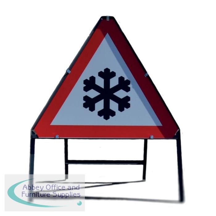 Winter Hazard Snow and Ice Warning Sign Red/White . Heavy duty, triangular traffic sign manufactured from mild steel. Printed with winter symbol to warn of temporary hazards. Quick to position and folds flat for easy storage.