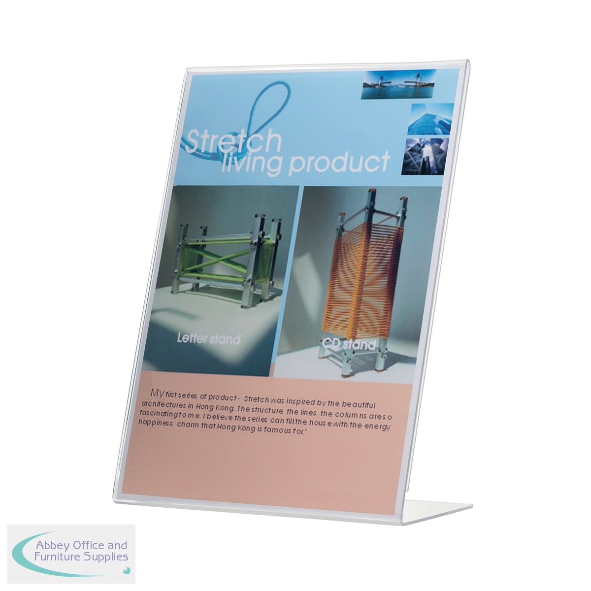 Ideal for display on receptions, retail counters and at information points, as well as having a variety of other applications, this A5 sign holder is the perfect way to advertise offers and display information. Made from sturdy plastic and moulded in an 'L' shape, this holder sits at a slanted position for optimal display. This holder is side loading to ensure quick and easy use.
