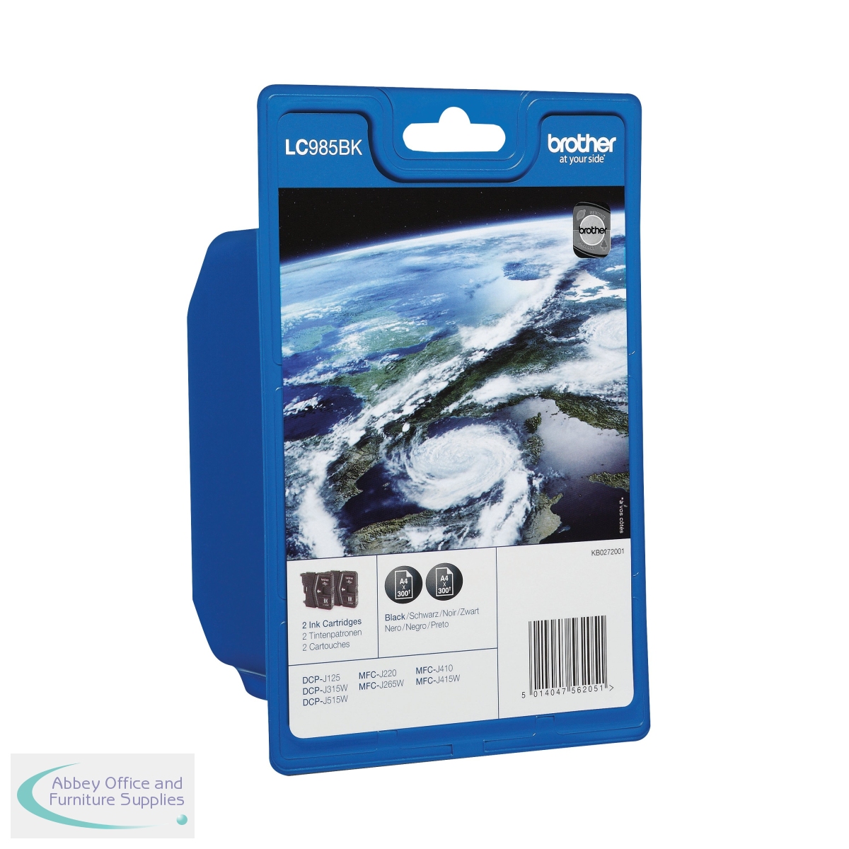 [ Brother; Printer/Fax/Copier Supplies; Inkjet Cartridges; Black; OEM Code LC985BKBP2; EAN 05014047562051; VOW Code BA56205 ]