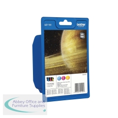 With a reputation for high quality, reliable components, you can trust in Brother LC1100 ink cartridges for top quality, high resolution results. Brother printer machines work with separate ink cartridges meaning you only have to replace the empty cartridge, producing cost savings. Providing high quality results with vibrant colour prints that won't smudge, this high yield inkjet cartridge rainbow pack (one each of cyan/magenta/yellow) produces up to 325 A4 pages per cartridge at 5% coverage.