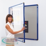 Deluxe contoured frame covered noticeboards. Contemporary styling, heavy duty construction and optional coloured framing creates a deluxe covered noticeboard. Available in range of six popular sizes and a wide variety of colours. Loop nylon surface accepts Velcro® as well as pins. Single door versions can be mounted portrait or landscape, with hinge to side, base or top; but do not include support stays. Made in the UK.