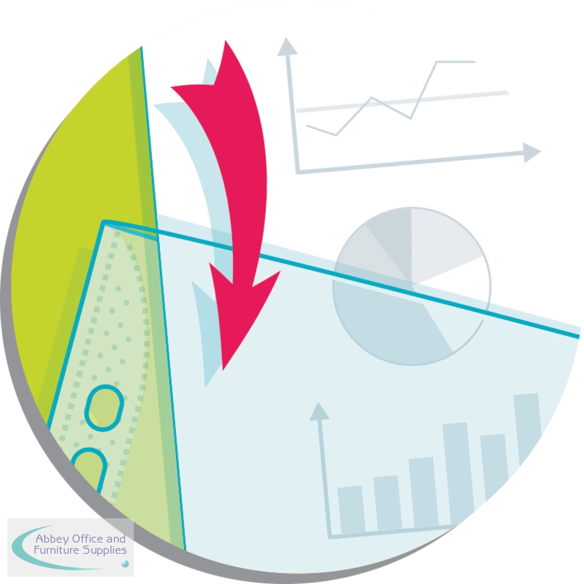 These Oxford Quick In punched pockets feature a curved opening that helps guide documents into the pocket for quick and easy insertion. The top opening pockets are made from clear 75 micron polypropylene and feature a multi-punched strip for filing in standard ring binders and lever arch files. This pack contains 100 glass clear A4 punched pockets.