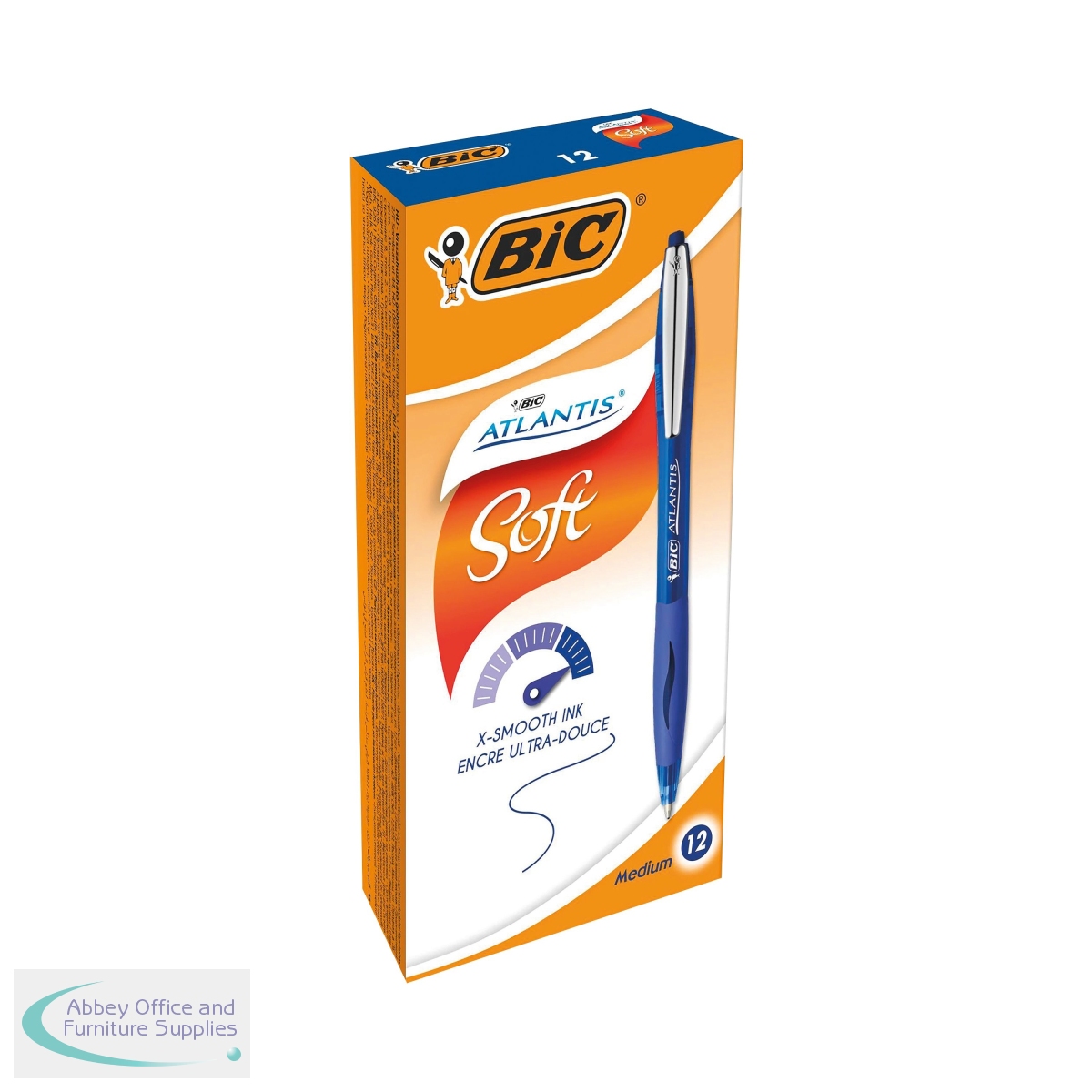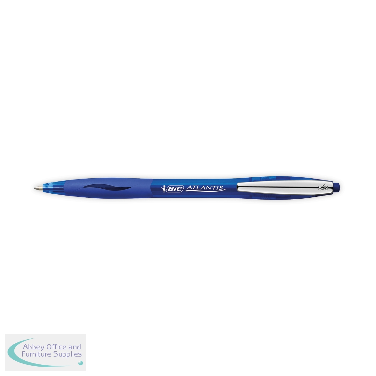 These Bic Atlantis Premium Ballpoint Pens feature Bic Easy Glide ink for smoother, more consistent writing. The medium 1.0mm tip writes a 0.4mm line width, perfect for everyday handwriting. The retractable pen also features a stylish curved barrel for comfort in use and a metal pocket clip. This pack contains 12 blue pens.