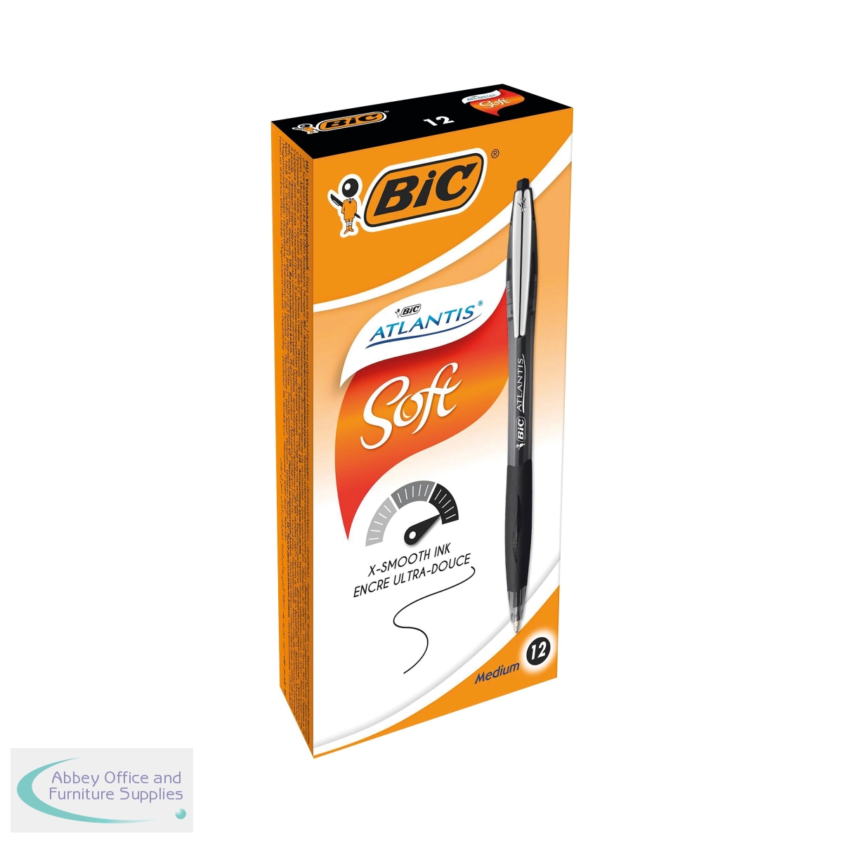 These Bic Atlantis Premium Ballpoint Pens feature Bic Easy Glide ink for smoother, more consistent writing. The medium 1.0mm tip writes a 0.4mm line width, perfect for everyday handwriting. The retractable pen also features a stylish curved barrel for comfort in use and metal pocket clip. This pack contains 12 black pens.