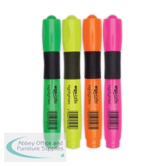 This Ergonomic Highlighter Pen features a round barrel with a large rubber grip for comfort in use. Filled with vibrant yellow ink, the pen is ideal for highlighting and underlining notes, textbooks and more. The chisel tip writes a 2 - 5mm line width for versatile use. This assorted pack of 4 contains yellow, pink, green and orange highlighter pens.