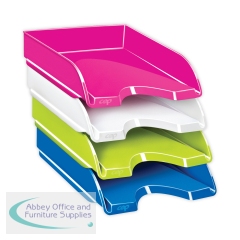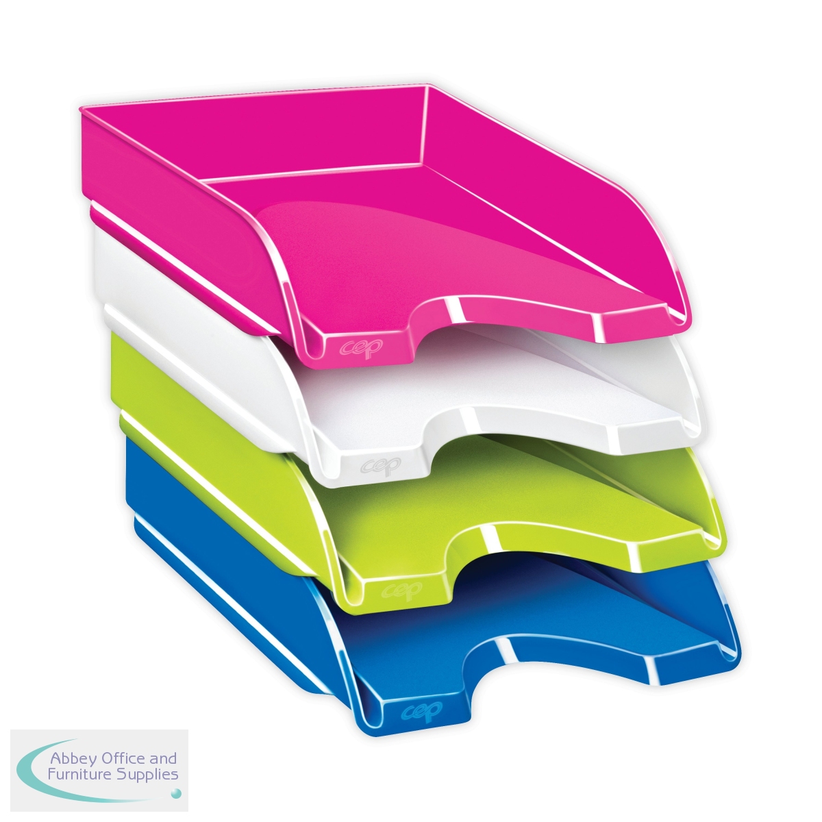 This CEP Pro Gloss letter tray can hold papers and files up to 240 x 320mm in size for convenient desktop storage and organisation. The tray can be stacked vertically or in a stepped formation without the need for risers, and the wide, cutaway front opening makes retrieval of documents even easier. The tray is 100% recyclable with a high gloss finish. This pack contains 1 white letter tray measuring W257 x D348 x H66mm.