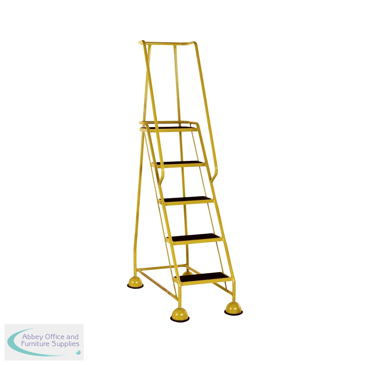 This Yellow 5 Tread Step is perfect for use in warehouses, stockrooms and other environments. The step is constructed from full welded tubular steel, which is durable and has a capacity of up to 125kg. The ribbed rubber treads are 80mm deep and provide excellent grip to prevent accidents. Measures 380x1120x1940mm (WxDxH) and includes castors that have non-marking tyres for easy transportation.