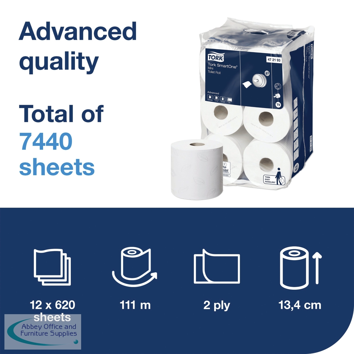SCA05413 - Tork T9 SmartOne Mini Toilet Roll 2-Ply 620 Sheets (Pack of 12) 472193
