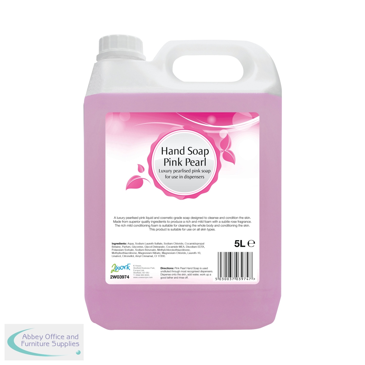 2Work Pink Pearlised luxury liquid hand soap produces a rich and foamy lather that is kind to all types of skin, even sensitive. This luxurious soap leaves your hands feeling soft and fragrant all day long. Supplied in a economical 5 litre bottle, it is ideal for use in bulk fill washroom dispensers, for easy application to hands.