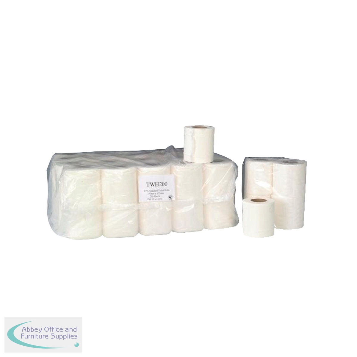 These double ply white toilet rolls offer great value for money and are soft, strong and absorbent. Each roll contains 200 sheets for extended use, making them both economical and efficient. In addition, they are made from 100% recycled paper, enabling you to reduce your carbon footprint and do your bit for the environment. A hollow central tube allows them to be placed on a dispenser for quick and easy access. This pack contains 36 white rolls.