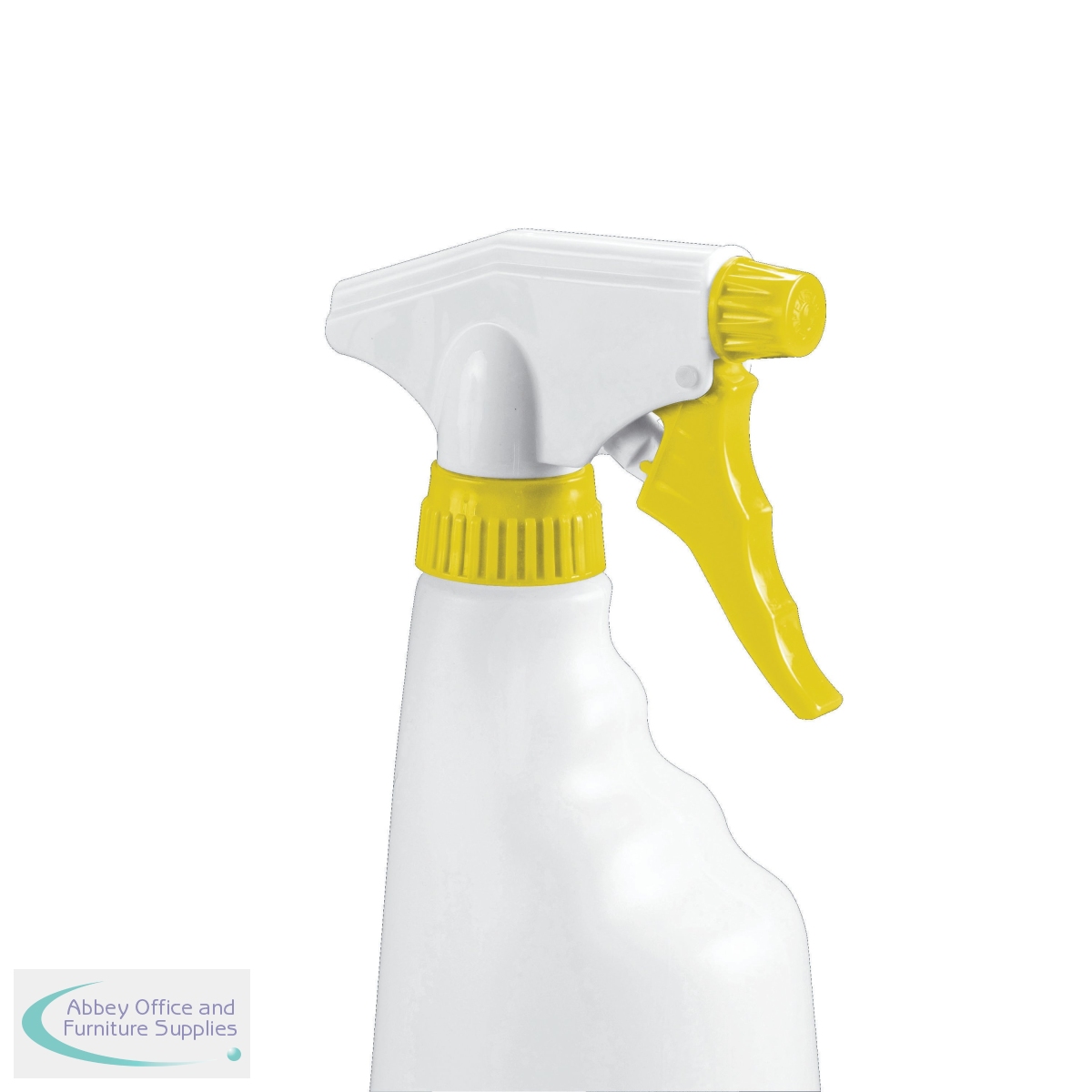 These trigger spray refill bottles are ergonomically designed for comfortable use, with a pistol grip, three finger trigger made from durable polypropylene. The trigger features a locking nozzle, which prevents leaks when not in use and also has an adjustable spray function to suit your use. The bottle is supplied empty for versatile chemcial dilution applications to suit your needs. Supplied in yellow, it is ideal for use in colour-coded systems.