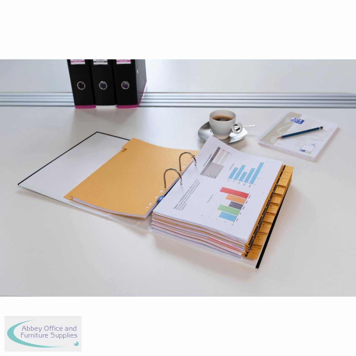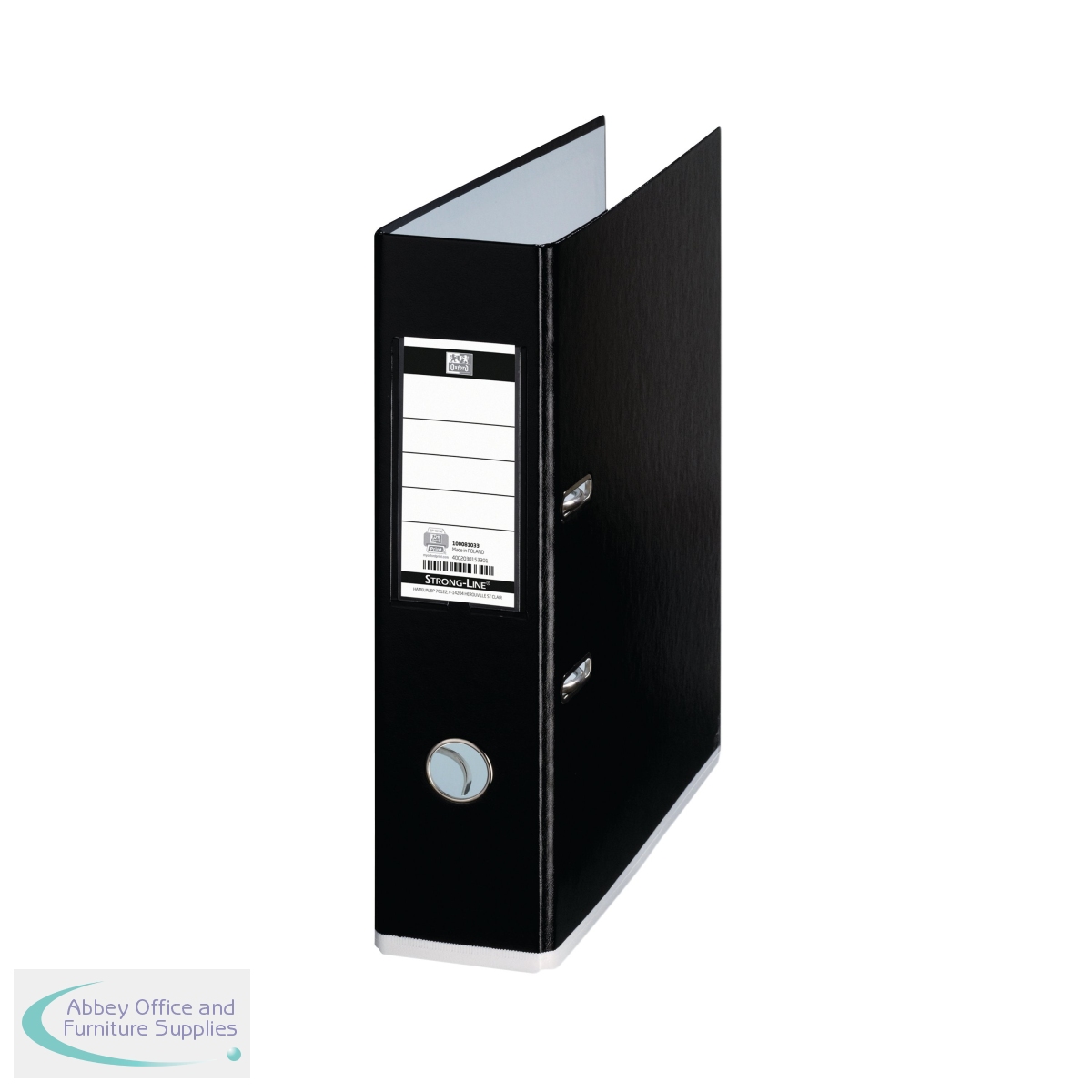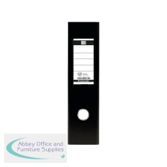 This Oxford MyColour file features a standard lever arch mechanism with an 80mm capacity for filing A4 documents. Made from high quality polypropylene, the file has a reinforced bottom edge for increased durability and features a transparent spine label pocket and thumb hole for easy retrieval from a shelf. This black lever arch file has a white stripe along the bottom edge for colour coordinated filing.