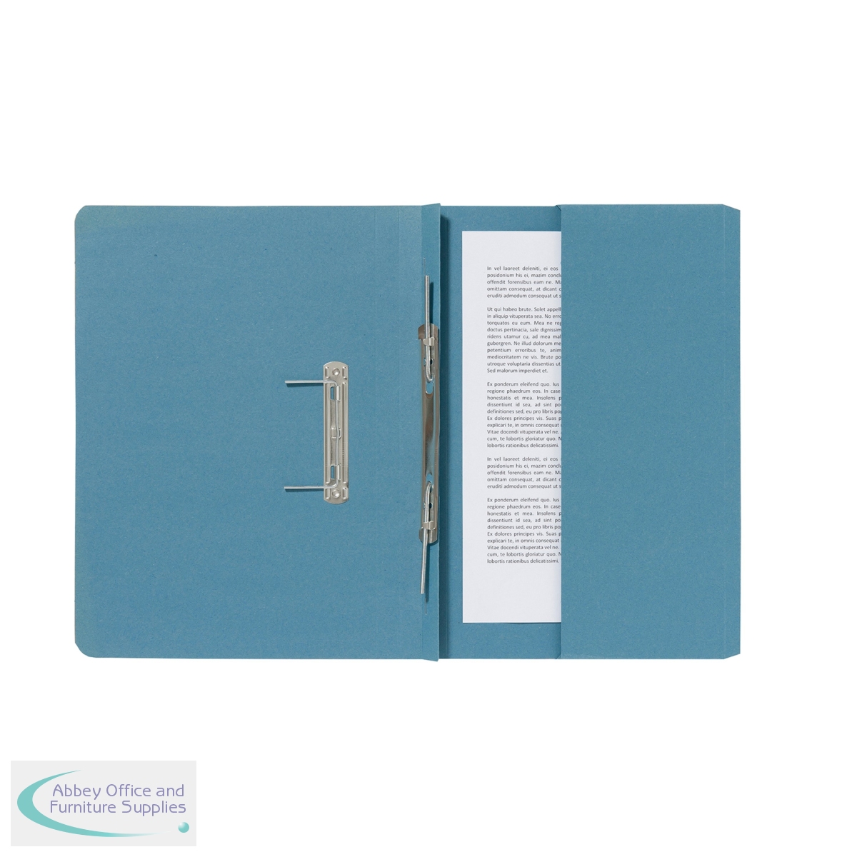 These strong 285gsm folders create a stylish filing solution for reports, presentations and more and are ideal for use in the office, home or classroom. The metal spiral fitting secures punched papers in place and allows them to be worked on whilst in the file. The useful pocket also allows you to store unpunched papers. These colourful files can be used as part of a colour coordinated filing system and have a 350 sheet capacity. This pack contains 25 foolscap files in blue.