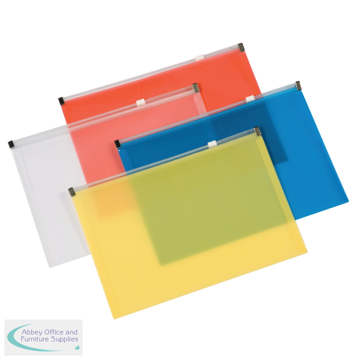 These lightweight, transparent Q-Connect Document Wallets have a plastic zip closure to help keep contents secure. Ideal for filing and transporting documents, school work and bulkier items, these A4 zip wallets can also be used as part of a colour-coordinated filing system. This pack contains 20 assorted wallets in red, blue, yellow and clear.