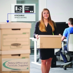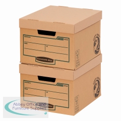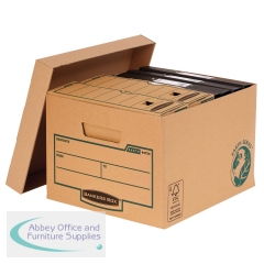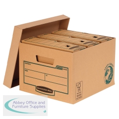 This economical Bankers Box Earth Series storage box features a lift off lid, fold back handles for comfortable carrying and a large labelling area for quick identification of contents. The durable storage box also features a double layer of board to the base panel for additional strength and is stackable up to 2 high. This pack contains 10 brown storage boxes measuring W390 x D320 x H250mm (internal).