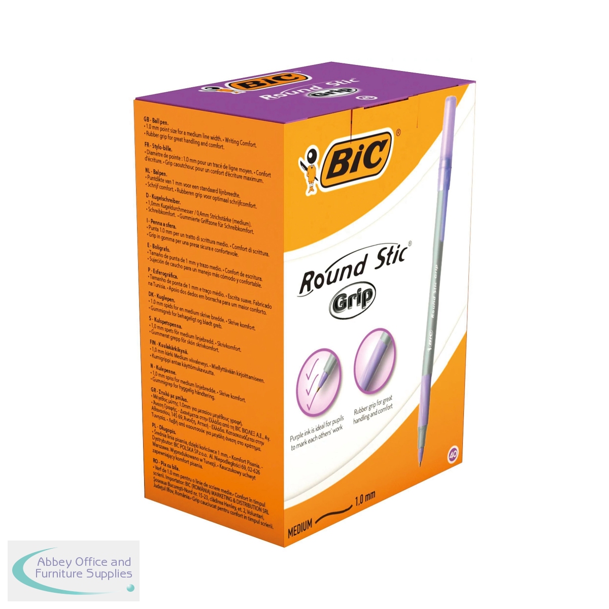 BC34578 - Bic Round Stic Grip Ballpoint Pen Purple (Pack of 40) 920412