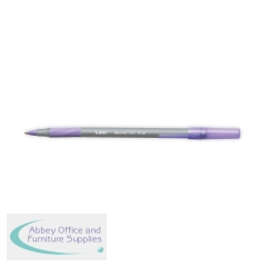 Designed for peer to peer marking in classrooms, this Bic Round Stic ballpoint pen contains vibrant puple ink and features a round barrel with a rubber grip for comfort. The pen has a medium 1.0mm ballpoint, which writes a 0.4mm line width. This class pack contains 40 purple ballpoint pens, ideal for educational use.