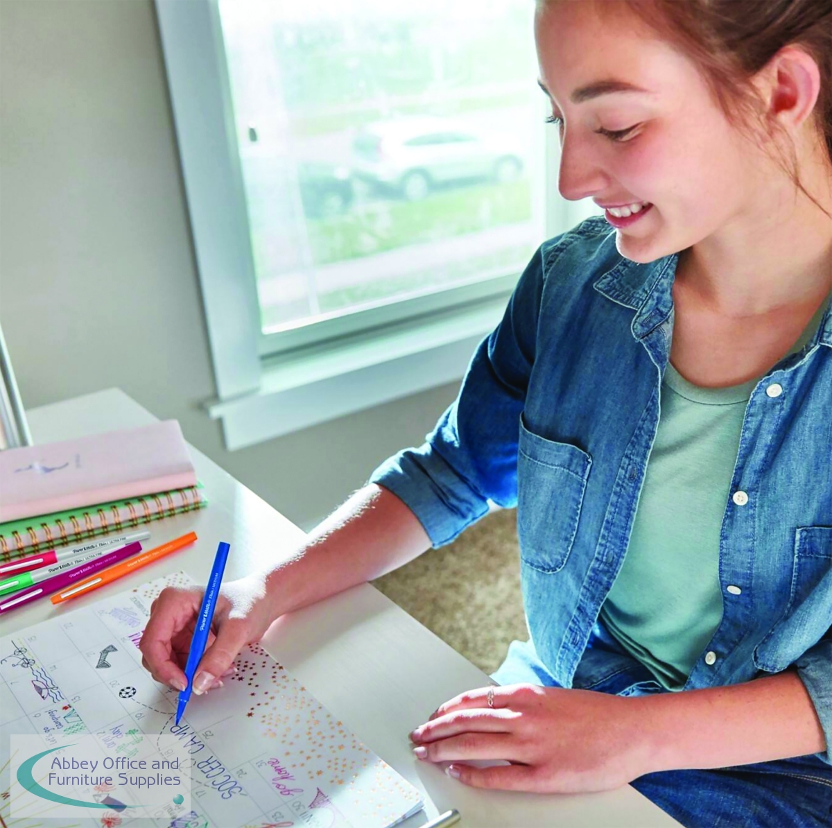 These great quality felt tip pens are long lasting and highly durable, with water-based ink that is quick drying, and smear and smudge resistant. The fibre tip features a durable, metal reinforced point and the ink is designed not to bleed through paper for a professional finish. With a medium tip for a 0.8mm line width, ideal for everyday writing and drawing. This pack contains 12 black pens.