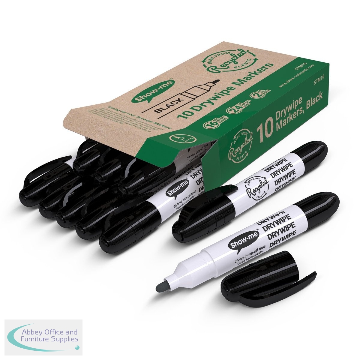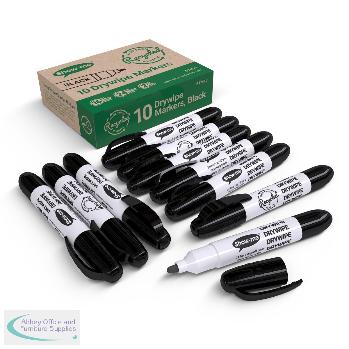 EG60301 - Show-me Eco Drywipe Markers Black (Pack of 10) STM10