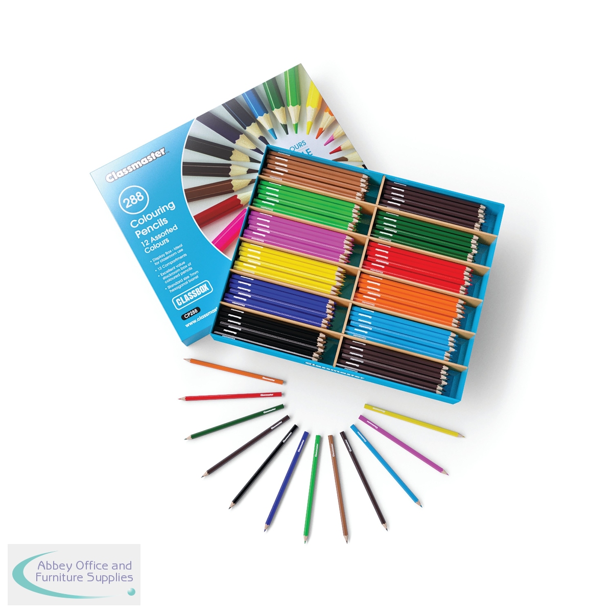 Pre-sharpened and ready-to-use straight out of the box, these Classmaster colouring pencils are ideal for artists of all ages. Each pencil is made from reliable quality wood in a polished, hexagonal barrel, so there's no need to worry about breakages or pencils rolling under desks out of reach. The 3mm diameter lead is softer for excellent colour laydown; ideal for younger artists and for colouring in. Pack contains 288 colouring pencils in 12 assorted colours, in a compartmentalised tray.