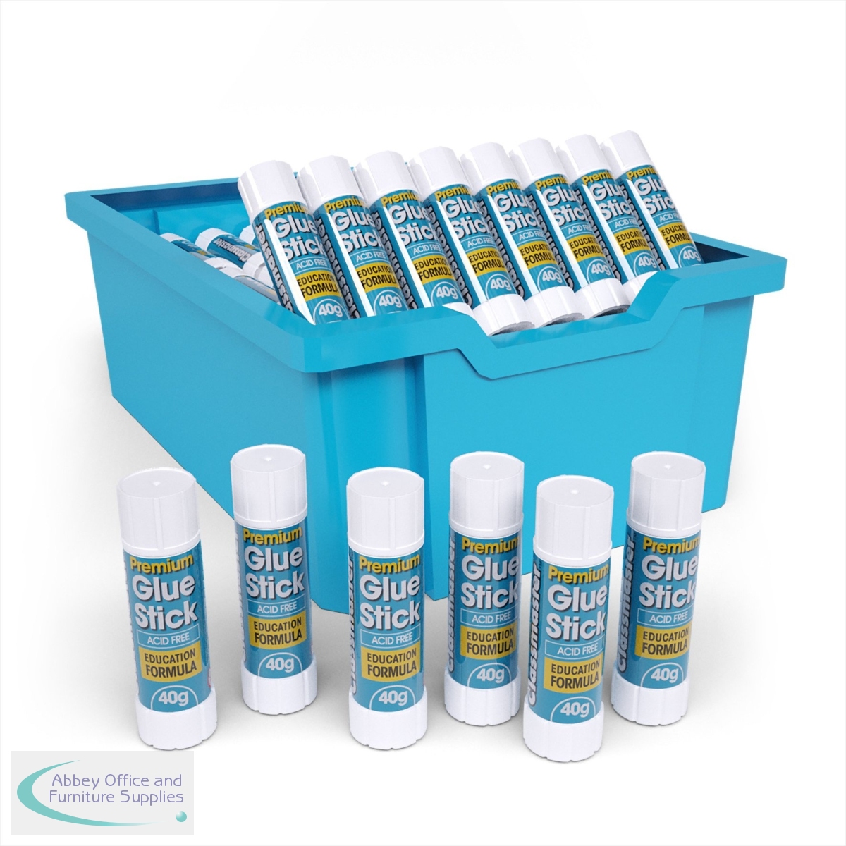 Classmaster's premium glue sticks have been developed specifically for use in schools. The long-lasting PVP educational formula gives these glue sticks a shelf-life 3x longer than those made from standard PVA. The washable formula is non-toxic, acid and solvent-free, making it safe for use in classrooms, offices, and other environments, such as nurseries, playgroups and art and craft workshops. Pack contains 108 x 40g glue sticks in a classroom tray compatible with most school storage systems.