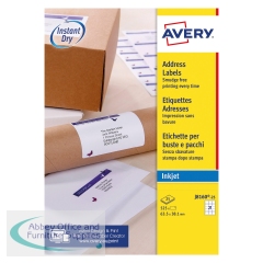 AV10615 - Avery Inkjet Address Labels QuickDRY 63.5x38.1mm 21 Per Sheet White (Pack of 525) J8160-25